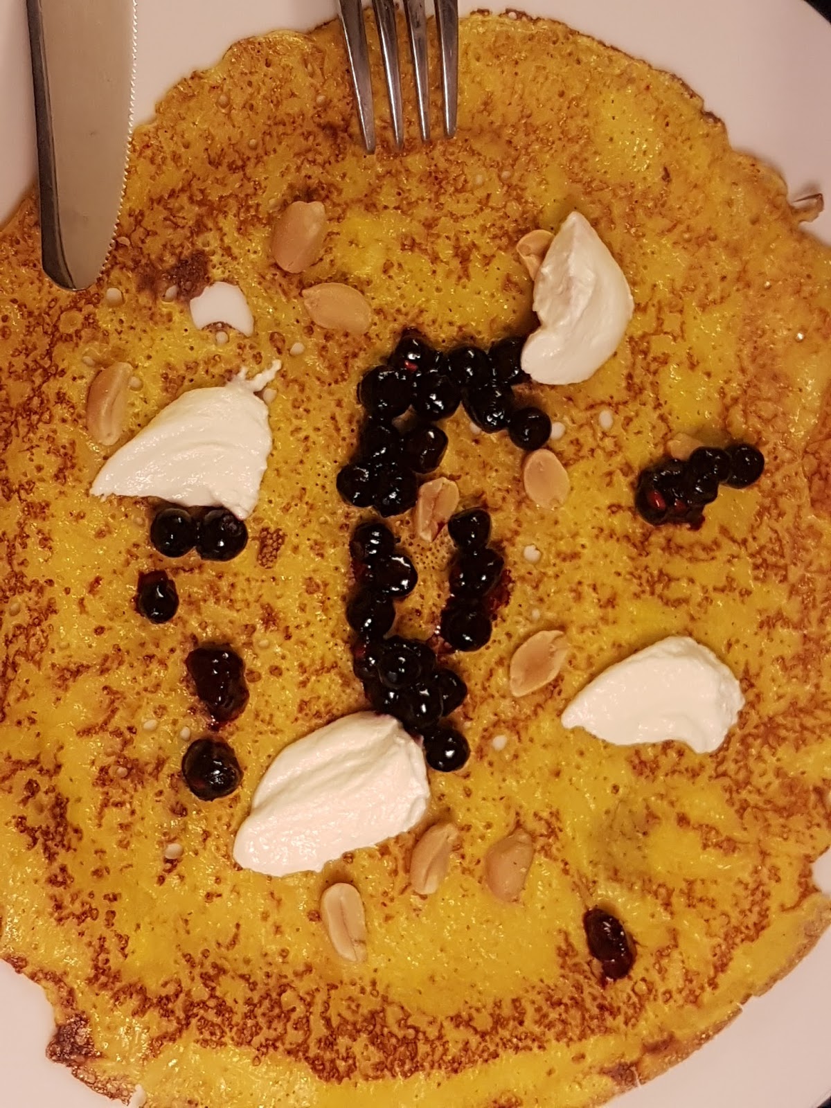Blanda ihop allt och låt smeten vila i 30 minuter. Stek sedan gyllenbruna pannkakor och toppa med godsaker.